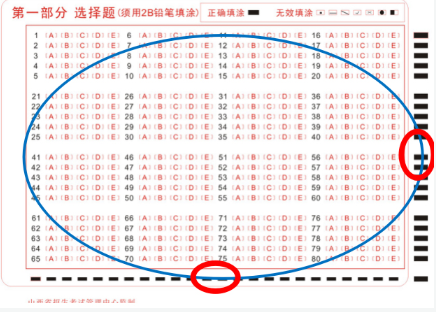 答题卡的格式:答题卡设计采用主客观一体化设计,选择题和非选择题的答题区域在同一张答题卡上。答题卡分通用卡、专用卡两种类型。大部分科目使用通用卡,少数含特殊题型的科目使用专用卡,专用卡在通用卡的基础上加上特殊题型。